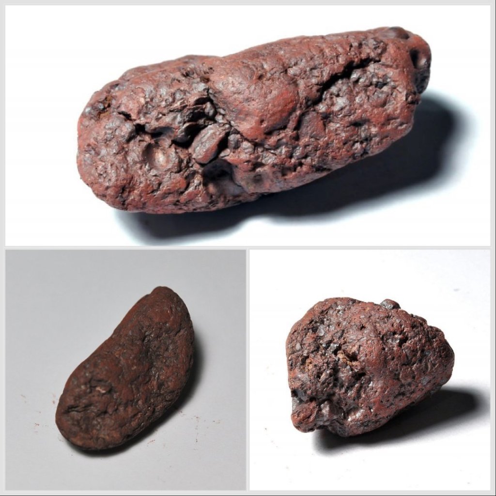 經過千萬年的風化後,老麻瓜旗下古陶研究所的礦工群終於發現了它們的蹤跡,也所幸這批老礦工跟著老麻瓜好多年...,天天上山下井尋覓奇礦異泥,多少也已帶著藝術專業的眼光與內涵(經過老麻瓜的日夜嘮叨與龜毛,早已不似常見的礦工粗獷樣了),他們一挖到這野小子,就直覺的認為絕非地球該有的礦物,所以立即很興奮的一群人在附近地毯式搜索的挖掘出三顆天鐵隕石(時間已太久了,應該是二顆或三顆),當晚礦工班長在古陶研究所內,很興奮的當著所有作家的面前,將三兩顆野小子就從桌子的那端滾了過來老麻瓜眼前,大聲嚷嚷著:余董,你看我挖到隕石!