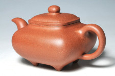 在有別於歷史傳器的端莊穩固的腦海印象裡頭,韓所長推敲出另類「動感而秀逸、靈動而自然」的新形象,大大的推動了「傳爐壺」的精神與內涵,略微低扁的形象,跳動的壺嘴線條,略薄的胎身,內收較大的「小四方足」,蹦出了生命力與躍動感,也賦與十足戲劇般的創作張力!