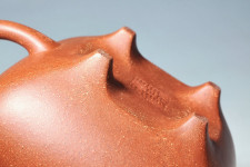 燒成後成品為赤茶褐胎色,鏗鏘有聲、觸感絕佳,水色不錯,一經泡養擦拭則快速包漿與變色,為甚具泡養成就感之優質朱泥系也!
