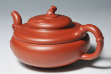 韓洪波老師此作品以南方的竹子為創作題材,身筒寬圓而略扁,壺肩巧妙的裝飾一圈如竹節般的凹線,真是神來之筆,頗具畫龍點睛之妙,一下子就呼喚出作品的主題。
