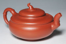 壺蓋沿十分飽滿,使與壺頸接合後,產生如竹節般的視覺效果,看起來便是整壺擁有二段竹節,壺鈕再以一小段彎曲的竹枝段作收,增添了視覺的美感外,也讓壺蓋很有人體工學的易於開闔沖茗使用;加上古農真壺稀世名泥的茶湯表現,更使作品的「理、意、趣」外,又添上茶湯的優美享受也!