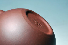 燒成後胚面微泛白霧之氣,乃高量鐵質蒸發後的特異現象,一經泡養或細心擦拭後,霧氣盡去,換來的是溫潤剔透的質感,與棕紅近紫的變幻色調,十分迷人而高貴。