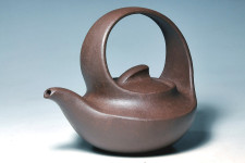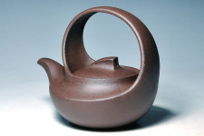 曲壺的造型,乃20世紀末,由中央工藝美術學院教授張守智先生設計完成,曾獲許多大獎,取材於自然界的蝸牛形象與線條過渡,壺嘴長伸如蝸牛之頭部,壺把,壺嘴至身筒腰線由下往上圈彎至壺頸線條,直似蝸殼之渦輪意象,壺腰以上如蝸牛之身體,壺腰以下為蝸牛的腹足,如此由自然界取創作題材,再以抽象的現代美術內涵來詮釋作品,真乃紫砂界的世紀名作也!