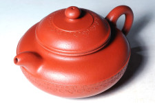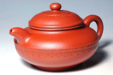 本作品“圓如意壺”特以茶湯品質絕佳,現已正式稍更改細碼砂的嫩“繁星朱砂”為胚製作,以敦樸福泰的主題精神,雕琢出安祥拙樸的完美氣息!