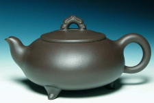 本作品所採用的泥料,乃特殊的實驗泥之一系,係採用紫茄泥為泥基,配上大量的紫朱泥漿調和而成,持之沉重似鐵,質感細緻剔透,茶湯厚實醇和且兼具朱泥的敏銳性,值得喜好特殊泥料的玩家們細細品味玩賞!