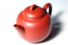 為使本作品能雅俗共賞,故特尋此出水孔較大並具有暢快水流,及壺身飽滿寬暢,大小容量適中,最具實用價值的品種來生產,期使有幸少數的擁有者能充份利用“灑金大紅袍”的泥料優勢,沖泡出過人的難忘茶湯!