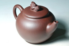 燒成後胚面微泛白霧之氣,乃高量鐵質蒸發後的特異現象,一經泡養或細心擦拭後,霧氣盡去,換來的是溫潤剔透的質感,與棕紅近紫的變幻色調,十分迷人而高貴。
