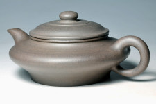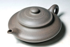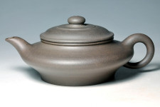 本作品為全手工成型之作,採超高難度打身筒的技法,拍出壺腹中線“扁而不蹋”的效果,實屬十分不易,蓋鈕下之雙圈細巧精美而不纖稚,大塊面的大膽身胚,及漂亮的過渡,運用泥性的展延特質,堆砌成饒有情趣的玩賞價值,採用“嫩茗嶺變色泥”為胚,更使作品老味十足,望之讓人油然發思古之幽情,使人難以釋手矣…!