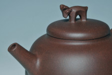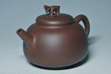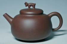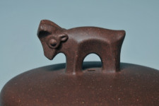 本作品乃高級工藝美術師陸虹煒老師1990年代於古農真壺旗下承包時所創作,作者以優異的製壺功力為底,藝術涵養為輔,採明快簡練的線條過渡來做為身筒主題,蓋面中央以一件抽象而巧手雕塑出的有勁春牛為壺鈕,更彰顯出作品的可觀性,也確定陸虹煒老師製壺創作精華之內在,更是觀賞、收藏與實用三者兼具的絕佳好壺也!