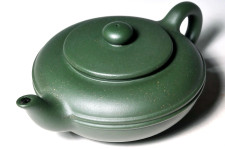 在胎表的改進上,刻意以極稀的紅、黃大砂粒點滴疏鬆的點綴於壺表上,似初雪落綠葉,具悠然神往之趣,免除了前代滴翠的單調色調,與平淡的養成效果!