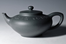 本作品以上彎而嘴口略開的壺嘴,及甚少見特殊的拋物線折角壺把,點化出不凡的藝術身影,中央蓋面至壺口的過渡線條,恰當的穩住了飛揚灑脫的動感,是一件十分成熟新穎的好作品!