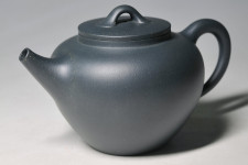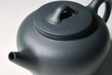 【本作品所採用的的天青泥,為古農真壺調砂名泥之一,壺表金砂星斑美不勝收,尤以此壺不僅壺底由吳貞裕老師精心鐫字:“玉潔壺‧戊寅年初春月周潔萍造於蜀山‧周‧3-2”;巧合的是這僅造三件中的第二件,其壺嘴上方中央恰有一金點躍然胎表(由斜拍鳥瞰圖中即可看出壺嘴上的金砂),更使本壺形成巧奪天工的自然特徵也】