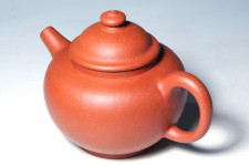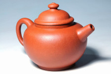 今日古陶研究所再度收集完成之此泥原礦後,為讓此泥的茶湯品質更為提升至完美之境,故除了選礦更加慎重嚴謹的提升外,再依練泥技術成熟度的提高下,略微調整了砂漿比率與練泥時的程序與步驟,使之前“海棠紅”之茶湯略欠完美之處一下子修正了過來,【梨皮海棠紅】除了逼熱性的提升外,茶湯更加開朗明快,並略帶雄渾的餘勢...,使茶湯更形完美勻稱,可圈可點!