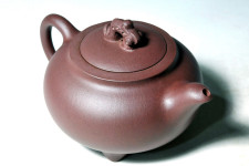 飽滿圓潤而精美的身影…,富生命力的動感…,及雕琢為美的壺鈕雕塑…,結合出迷人的景色…;別具特色…;有別於韓洪波所長的是…,壺嘴洞口周遭的特有潤飾手法,過渡與轉折之神妙讓人讚嘆,壺把隱現的小角度過渡手法,更是讓行家們大讚秀麗無雙也!