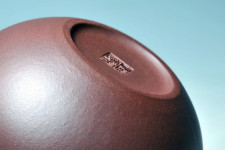 燒成後胚面微泛白霧之氣,乃高量鐵質蒸發後的特異現象,一經泡養或細心擦拭後,霧氣盡去,換來的是溫潤剔透的質感,與棕紅近紫的變幻色調,十分迷人而高貴。
