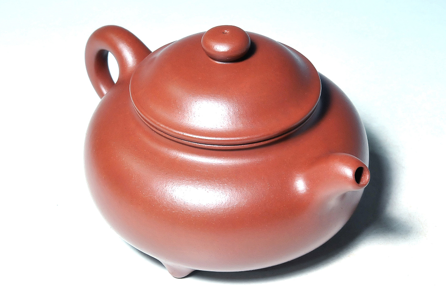 壺底可愛靈動的乳丁三足,巧妙的襯托起雍容華貴的圓滿壺體,飽滿而圓潤的壺蓋造型,美妙的劃出了外張的蓋沿,更巧妙的與壺頸圈子作出完美的呼應,造出了本作品的完美感受,美好無瑕的飽滿弧線與動感,配上秀麗小巧的壺嘴,和搭配壺嘴線條過渡的壺把形式,使整件作品的美滿意念讓人過目難忘,最重要的更是難得的火頭壺!
