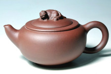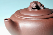 燒成後胚面微泛白霧之氣,乃高量鐵質蒸發後的特異現象,一經泡養或細心擦拭後,霧氣盡去,換來的是溫潤剔透的質感,與棕紅近紫的變幻色調,十分迷人而高貴。