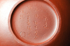 為增紫砂典藏之歷史價值,故吳江健老師特於此【天道壺j】的壺底鐫上創作理念《天道‧風流自古空餘恨‧紅塵踏破自坦然》的詩句,為“字隨壺傳、壺因字貴”做了最佳的註解。