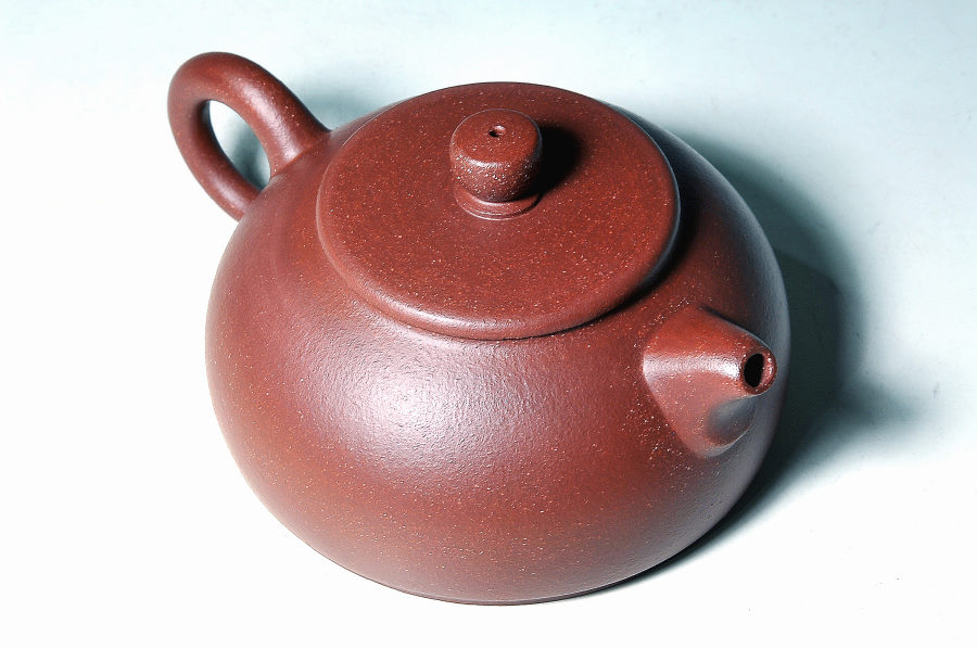 成品胎表呈現飽和朱褐色調,通透而溫潤,週身黃白點密佈,砂片兒重重疊疊,真是美不勝收,讓人歎為觀止!