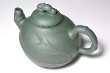 韓洪波所長採用【古農真壺稀世名泥~柳影】為胚,以「綠竹」的風韻神采為靈感,〝竹韻壺〞與〝柳影〞的交會,綠竹的韻味與綠色系的名泥巧妙搭配,無窮的詩情畫意,韻味幽雅而悠長…。