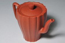 很罕見的,當創作這件『瓜瓞系列~凌霄壺』時,第一次遇見周偉君老師主動提及這件作品製作上的難度與挑戰,除了造型上的難纏外,應該也跟造型加上古農真壺稀世名泥的朱泥系收縮扭曲變形有關吧?