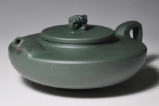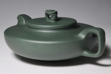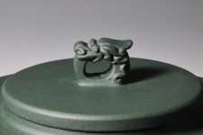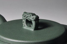超大超寬平的壺肩面與蓋面,游著一艘寓意的龍舫圖騰,就如寬闊的太湖上頭,迎風招展著這「只有」一艘龍船!