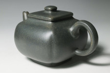 韓所長將此壺命名為「敦方」,乃因壺體四方端正,氣度沉穩,形若巍峨泰山,壺身線條剛勁有力,彷彿一位個性堅毅、卻溫和待人的君子。整體造型在方正中蘊含著敦厚,似將天地的浩然正氣納入壺中,寓意品行高潔,厚德載物。