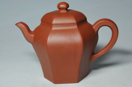 《已蒙0161阿濱哥全數收藏•全部售罄》曹潔手製• 六方凌雲壺s【灑金朱觕砂】