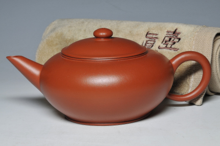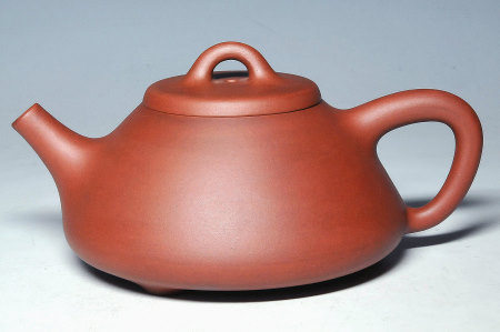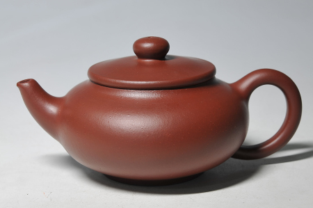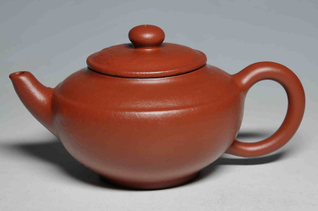 《已蒙收藏•全部售罄》早期特藝一廠純朱泥壺~扁腹水平壺d【紅朱泥】