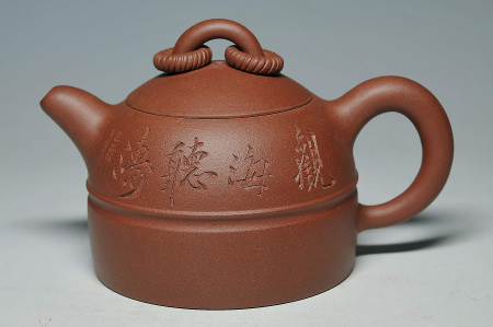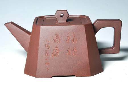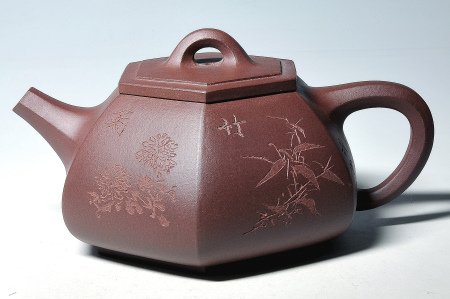 《已蒙收藏•全部售罄》路小明手製及鐫刻楊秋寶書畫•六方石瓢壺a【底糟青】