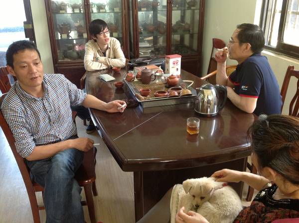 中國宜興陶瓷博物館•古農陶藝研究所內,老麻瓜正與作家們研究燒成率無法提升,及古農真壺稀世名泥總是難纏的頭疼老問題...,要求的超高窯溫及幾無黏性的稀世名泥,您瞧作家們的神情,即知此題無解!