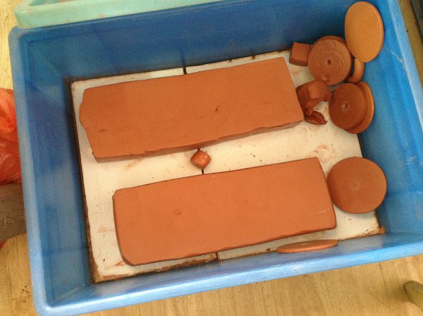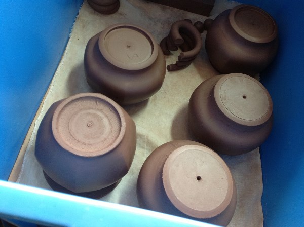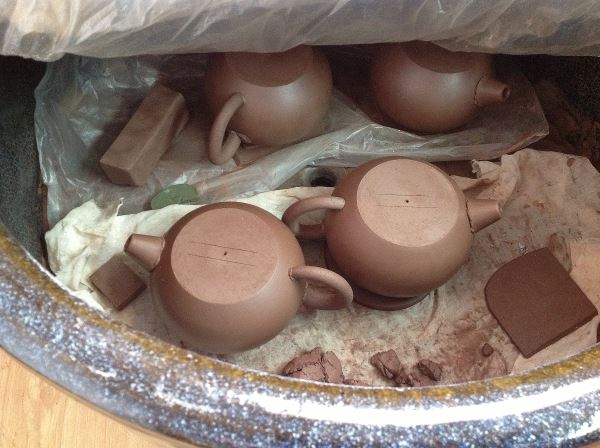 為使泥料乾濕度適中恰當以利加工製壺,所以有些過於乾燥的泥片與泥頭,即先置放於密閉的盒中,待適當時機始取出製壺。