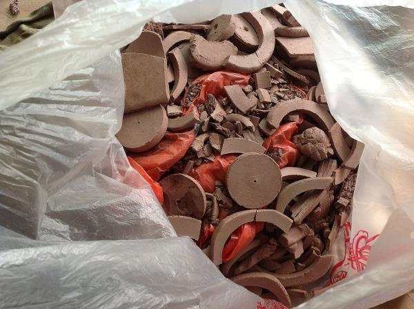不用懷疑..,拍攝的整袋泥頭都是飛來石,袋內的紅色部份是紅色塑料袋不是其他泥料夾雜在一起啦!