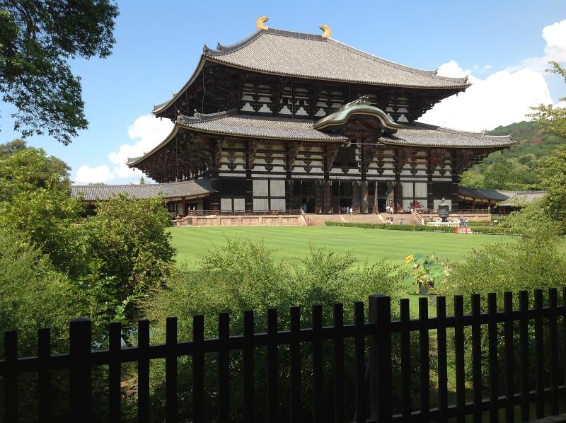 東大寺正前方的廣場礦石地板,最中央黑色調的那一長條礦石,是來自佛教的發源地“印度”,印度礦石的兩旁偏紅色調的石板,則是從中國運來的,中國石板的兩旁偏白色的石板,是從韓國運過來的;而兩旁最大部份的石板,則是日本當地的礦石。