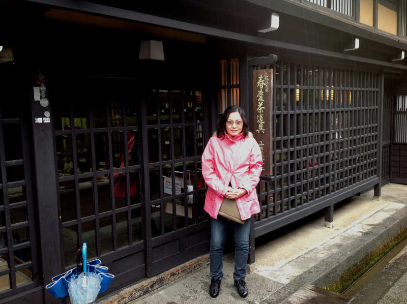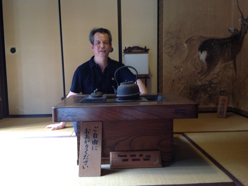 參觀格子房,看見茶桌,忍不住一定要留張影,想像一下古代的日本同好飲茶的情景,先過過乾癮再說了...。