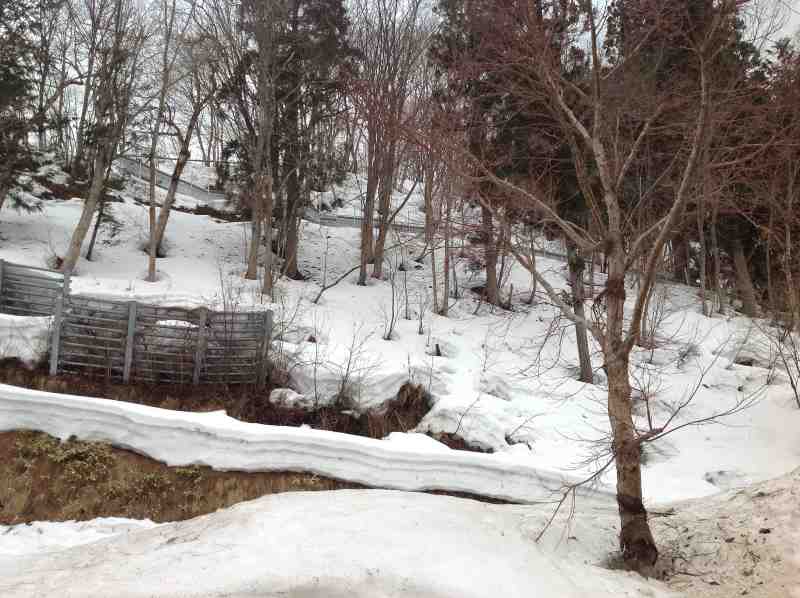 雪已漸融...,樹木逐漸甦醒,由圖片中可見樹下的雪已融解,可能是樹根已開始吸取融雪之水吧?