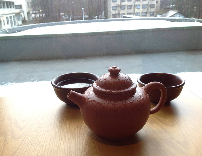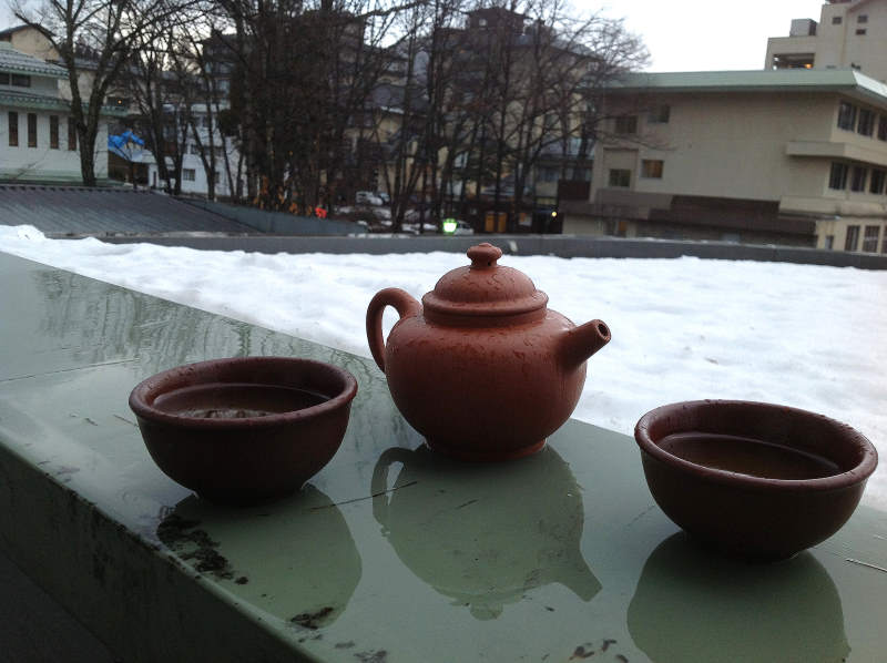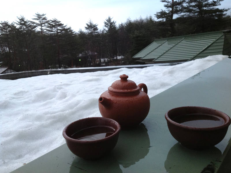 好像...,因室外氣溫太低及冰雪的原因,致熱水退溫很快,而有逼熱不足的茶湯味道出現。