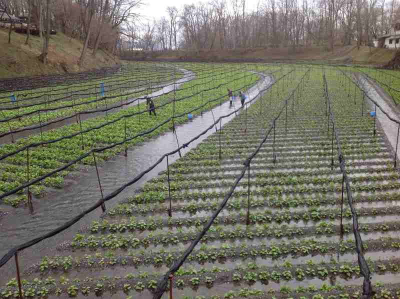 這就是用日本北阿爾卑斯山泉水來灌溉種植的山葵農田。(山葵=WASABI)