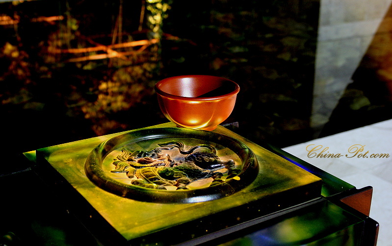 光從下方投射上,包漿後的蜜琉璃茶碗..還真成為晶瑩剔透、半透明狀的琉璃碗了!