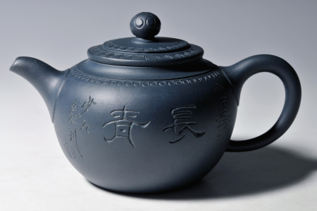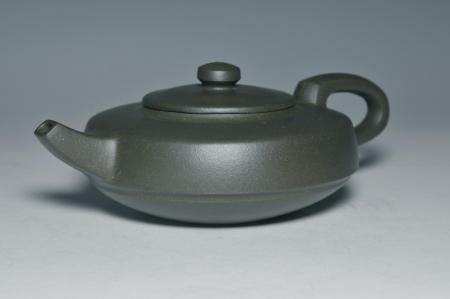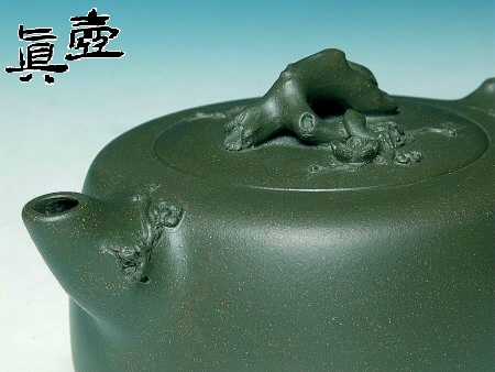 《已蒙收藏》徐芳手製•迴紋圓珠壺b~墨綠泥