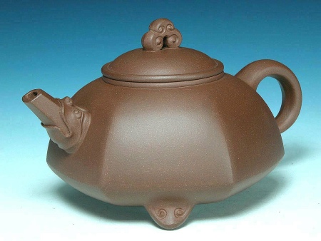 4.陸虹煒手製•螭虎串環壺~紫茄泥
