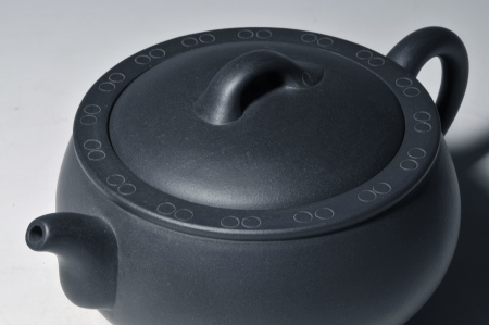 徐芳手製•迴紋圓珠壺b~墨綠泥