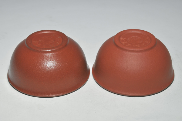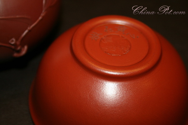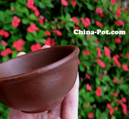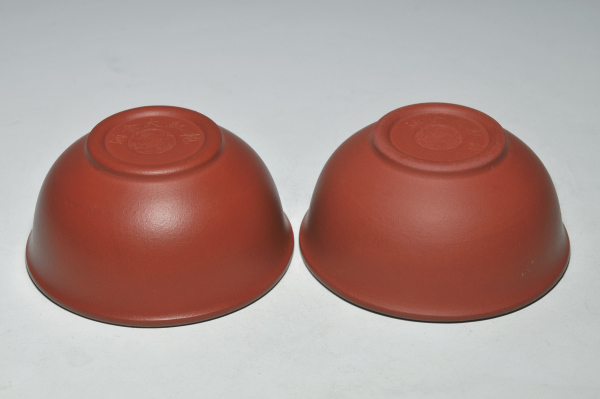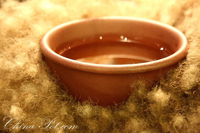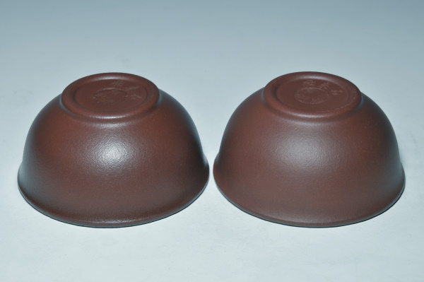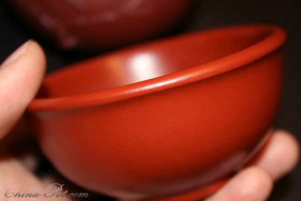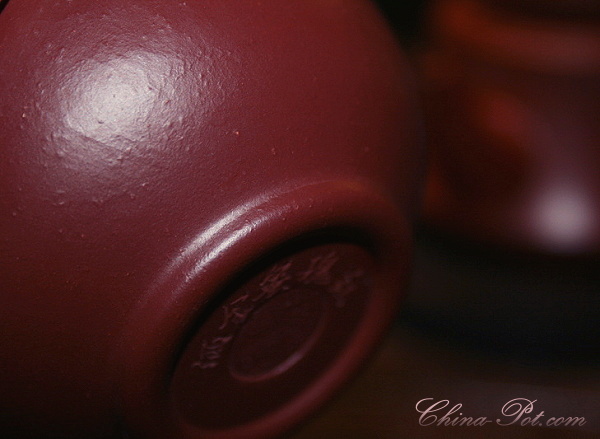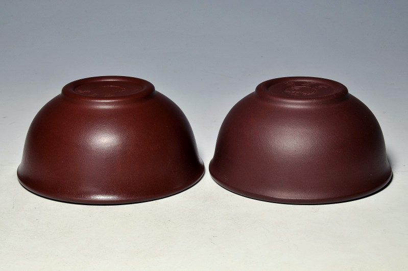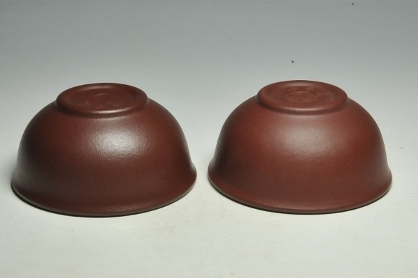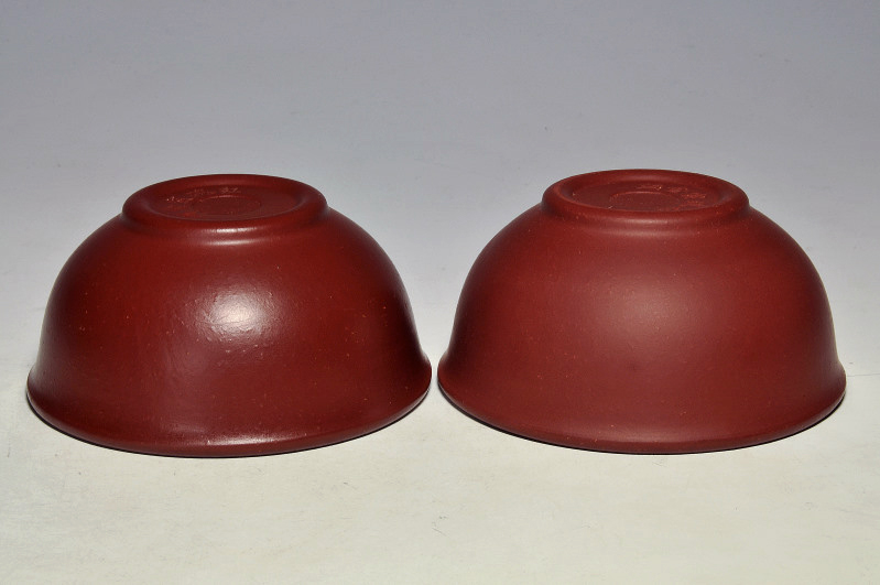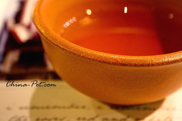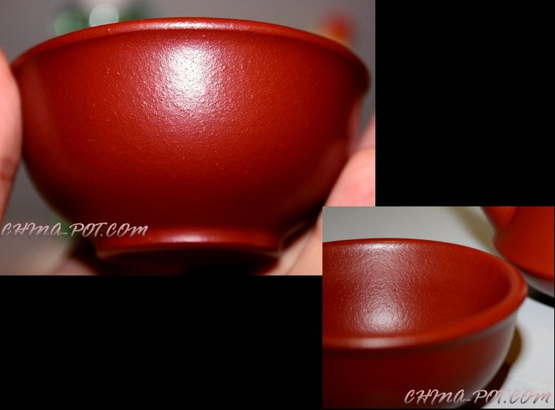 您可看到使用過的茶碗,已顯更加溫潤剔透,除了紫光色感更加豐富之外(註:典型的純朱泥系泥料風格,愈泡愈顯紅潤),更使胎表的朱泥收縮皺紋益加明顯,茶湯更是再上一層樓,泥料特色盡現也!