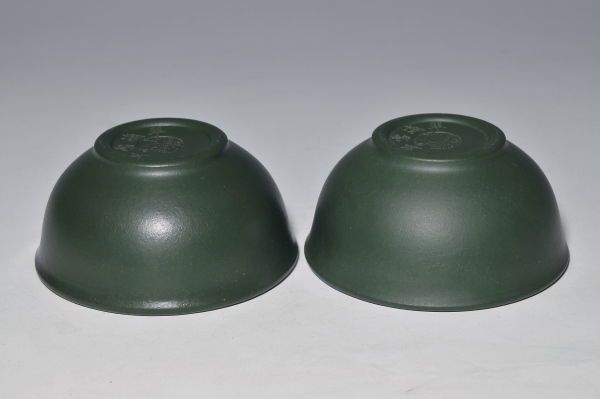 圖左的圓之月茶碗a~【早雪滴翠】為拿來品茗喝茶使用幾天後...;圖右則為未使用前,兩相對照之下,已可看出明顯的養成前後落差,使用過的茶碗,已顯更加清亮溫潤與色感豐富,茶湯更是再上一層樓,泥料特色盡現也!