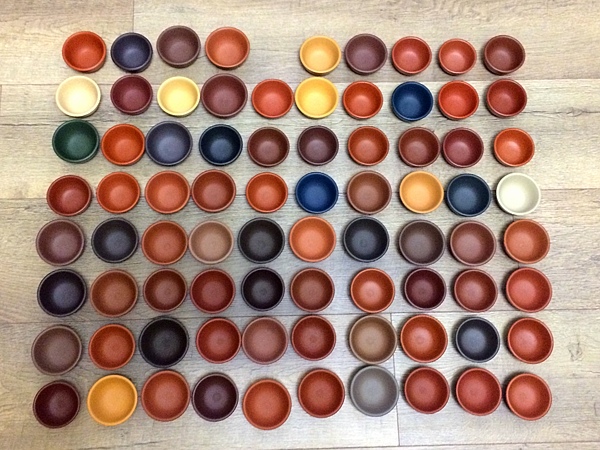 言歸正傳...,所有的圓之月茶碗製作時大小是一致的,但只要是不同泥料在陰乾後就開始大小不一...。