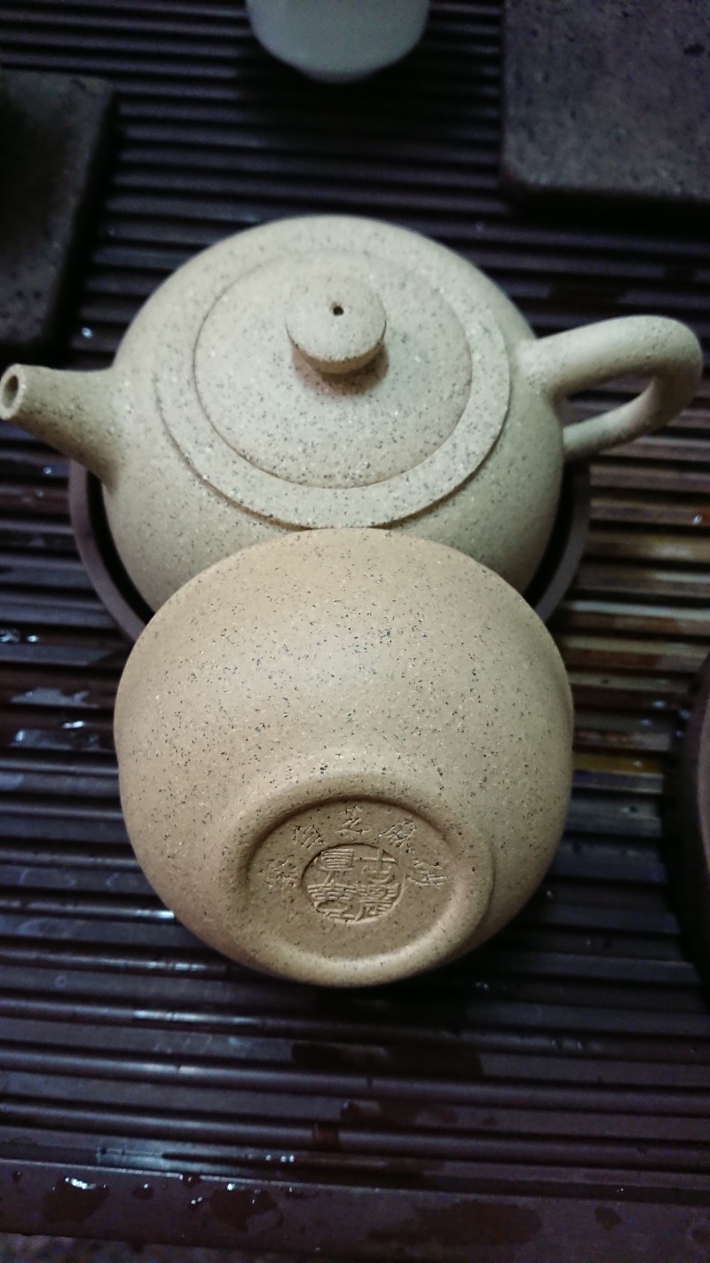 圖片是品飲約30次以內的窯白芝麻砂圓之月茶碗,泥色還沒有很深沉,但還是已暈出漂亮的茶色..,壺底鐫刻的字體也吃了茶色進去。形成一種因為“人”與物件本身的互動,而產生的獨特氛圍.....