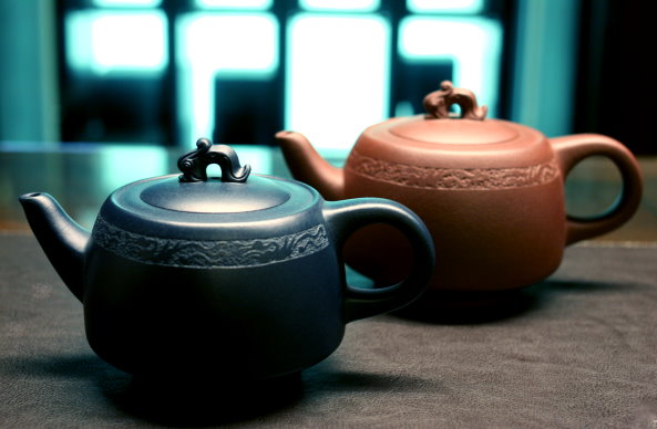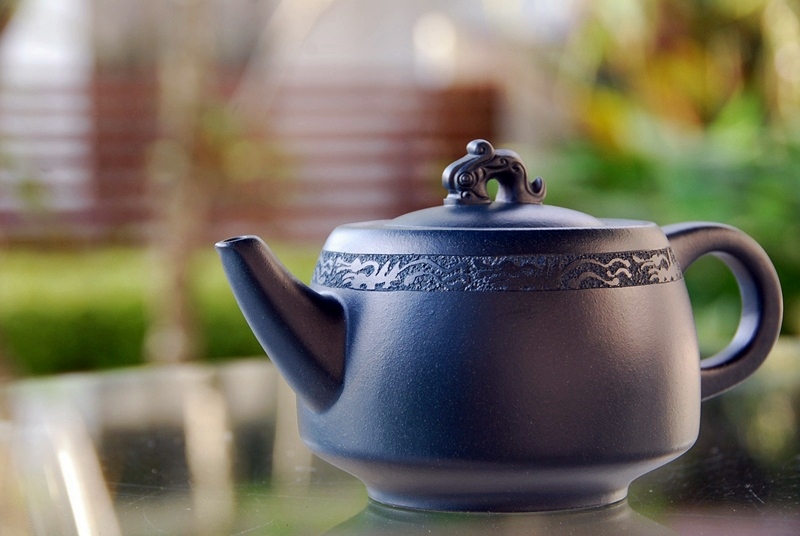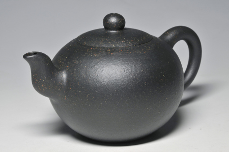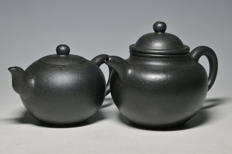 左為今夜發表新品之一:許仲•一粒珠壺【火頭•窯變~雙龍墨砂】