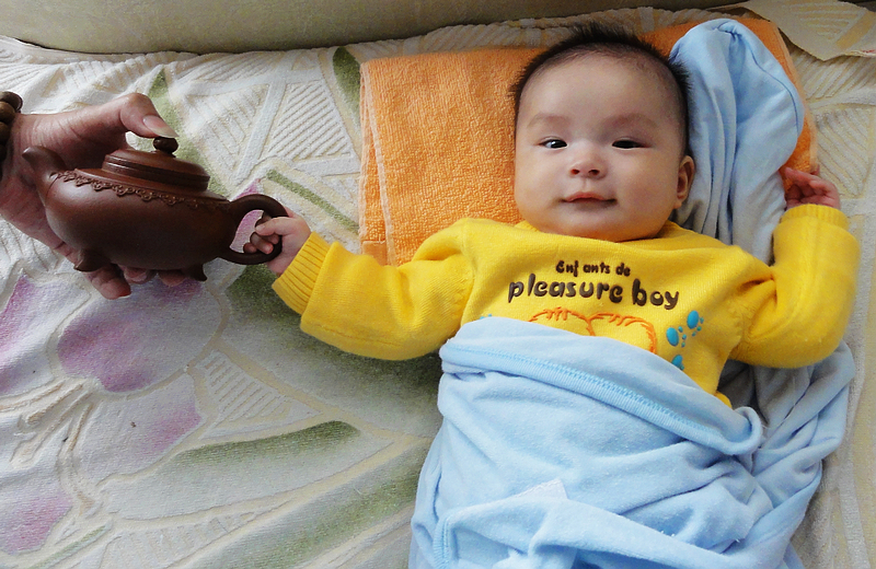呵!呵!...漂洋小兄弟真可愛,抓著顧老的壺就不放啦!