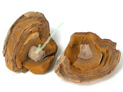 『箭頭指的白色核心』∼岩心老朱泥的原料。