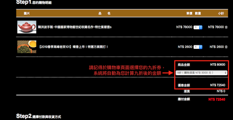 本次訂購茶葉A.B方案的會員,雖無法使用九折券,但若金額超過8000元新台幣,則: